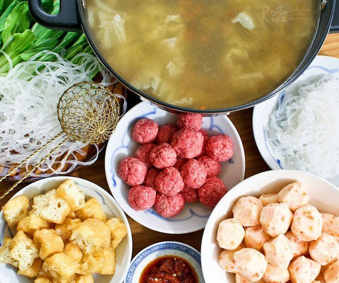 Meatballs are good choices for a hot pot. This time, I made fresh meatballs using extra lean minced beef. You can find the recipe here. Pork or chicken may be used in place of beef.